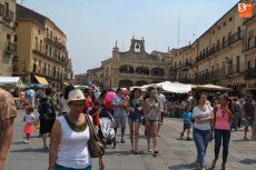 Poco a poco el centro de Ciudad Rodrigo se fue llenando de mirobrigenses, residentes y forasteros para disfrutar de un Martes Mayor que se celebró bajo el sol y con altas temperaturas, echando por tierra las previsiones de hace unos días (inicialmente daba lluvia). Por las calles y plazas de la ciudad había repartidos 270 puestos de todo tipo, récord absoluto en el Martes Mayor.