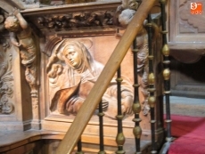 Allí pudieron contemplar autógrafos teresianos y sanjuanistas, más otras piezas de incalculable valor ligadas al paso de Santa Teresa por Salamanca. Las monjasmostraron un cuadro antiguo que reproduce el retrato de la sobrina de Santa Teresa, Beatriz de Jesús Ovalle, albense, hija de Juana de Ahumada y Juan de Ovalle. También les enseñaron otro lienzo con una interpretación muy particular de la transverberación: no es el ángel, sino Cristo mismo, quien vestido de cazador hiere con el dardo el corazón de santa Teresa.