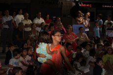 Los niños disfrutaron de lo lindo con los números del mago Gele Rodrigo, en cuyos 'sketch' interactuó con el público dentro del espectáculo nocturno previsto en esta jornada de vísperas de fiestas.