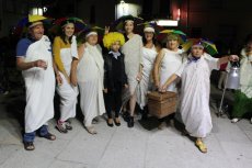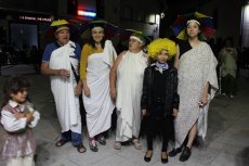 El desfile de disfraces de la primera Noche Temática a lo 'Cuéntame' llenó de diversión, colorido y música de época la Plaza de España.