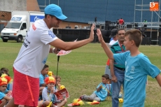 La jornada del viernes fue la última de los dos turnos del Campus de Fútbol Aris Marcos que se ha desarrollado durante las últimas semanas en el Francisco Mateos. Como es tradición en este Campus, la jornada final fue plenamente festiva, pudiendo disfrutar por ejemplo los chavales de una fiesta de la espuma.