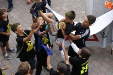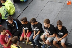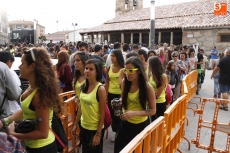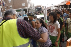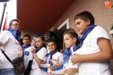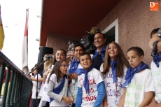 Ante una plaza del Ayuntamiento totalmente abarrotada ya desde las ocho de la tarde, cuando empezaron a repartirse las pañoletas azules símbolo de las fiestas de Carbajosa de la Sagrada, cerca de cuarenta integrantes del Club de Animación Ciudad de los Niños salieron al balcón para inaugurar las fiestas patronales de la localidad. Con el colorido que dieron también cuatro miembros de los Cabezudos del Centro Joven, el alcalde ofreció unas breves palabras al público para dar paso a los niños pregoneros, "lo más importante que tenemos en el pueblo, y que afortunadamente son muchos".