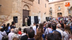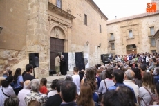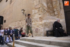 A partir de un texto original de Ángel González Quesada, los espectadores ha podido disfrutar de esta pieza teatral de calle, que pretende reflexionar de modo cercano y atractivo sobre la obra, el pensamiento y la vida del fraile Luis encadenado, más que a la celda inquisitorial, a ciertas intolerancias.