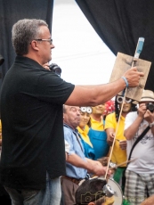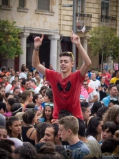 Y es el pregón y la elección de la reina y las damas uno de los momentos que los habitantes de la villa viven con mayor expectación, especialmente las cuatro jóvenes que pasan nervios antes de saber quién será elegida como reina. Autoridades y corte de honor ocuparon su lugar en el escenario preparado para dar paso al pregonero, el cocinero salmantino Fran Vicente, quien destacó en su discurso las virtudes de los productos de Guijuelo y animó a todos a disfrutar de las fiestas. La sorpresa llegó al anunciar su próxima boda.