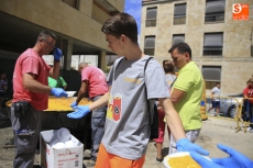 Arroz solidario en Villamayor. Vecinos y amigos se han reunido este sábado para compartir un buen plato de la paella solidaria a favor del Banco de Alimentos. Cita gastronómica para compartir mesa y para coger fuerzas para el resto de las propuestas festivas. Esta jornada también se ha podido disfrutar del parque infantil, tiro con arco y, por la tarde, la carrera de autos locos. Verbena para completar la jornada del sábado.