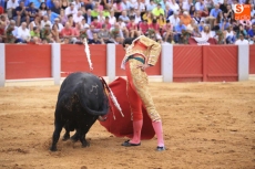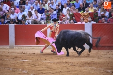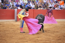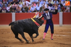 Con cadencia y repetición tomó el sexto de la tarde el capote de Castaño. Complicado el sexto que se quedaba muy corto por el derecho. Por el izquierdo no se acoplo Castaño con él abreviando la faena. Tras una media y un descabello recibió palmas.