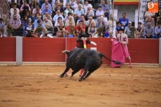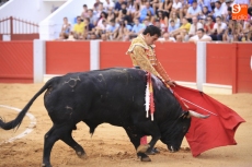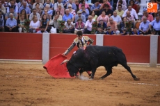 Recibió con una larga cambiada de rodillas López Chaves al primero de la tarde que embistió con codicia en las verónicas de recibo. Se lució quitando por chicuelinas aprovechando la movilidad del animal. Brindó al público una faena sobre la mano derecha con el toro a menos. Se apagó pronto y tuvo una embestida descompuesta y sin terminar de humillar. Chaves tiró de recursos arrancándole algunas series que calaron en los tendidos. Tras dos pinchazos metió media caída. Ovación.