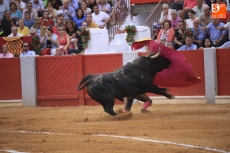 Flojea el regordío segundo de Adelaida en el intento de saludo capotero de Fortes. Rajado de embestida huidiza a media altura el segundo de la tarde ante el que Fortes pudo robarle algunos pases de entidad antes del arrimón final. Tras un pinchazo hondo y una estocada recibió una oreja.