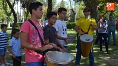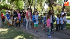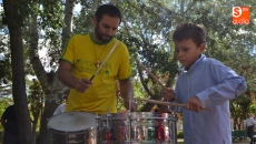 Más de una veintena de niños han participado este sábado en el Taller de iniciación a la Percusión 'Vettonia Percusión' impartido por Carlos Ontiyuelo Almeida. Durante casi dos horas los pequeños aprendieron el manejo de los instrumentos propios de esta disciplina musical, pudiendo hacer sus primeros pinitos con ellos en una creación improvisada que llenaba de ritmo el corazón del Parque Los Jardines y al numeroso publico se acercaba a disfrutar de esta actividad organizada en colaboración con el Ayuntamiento.