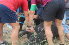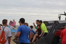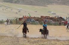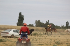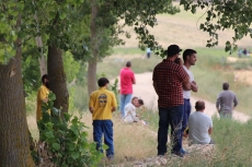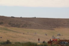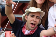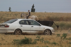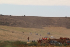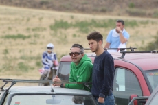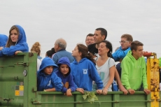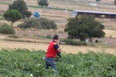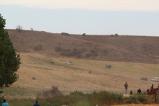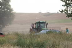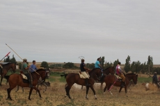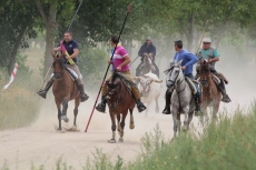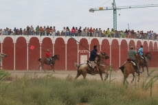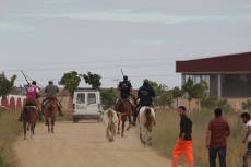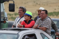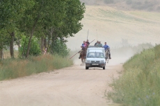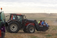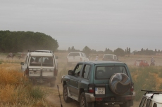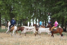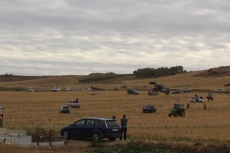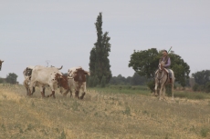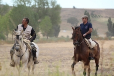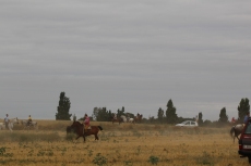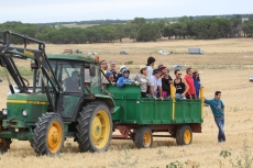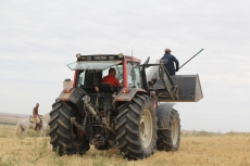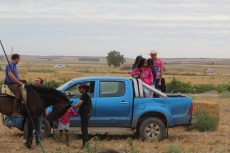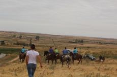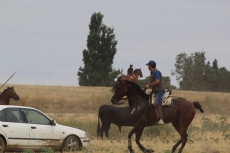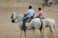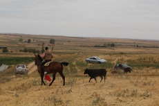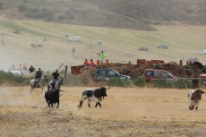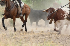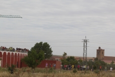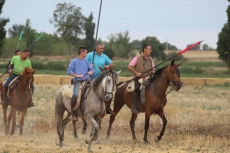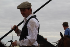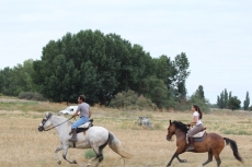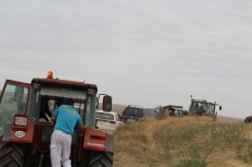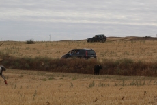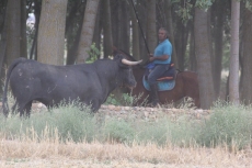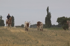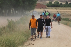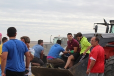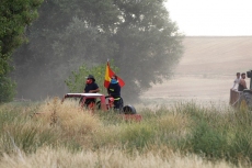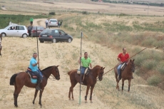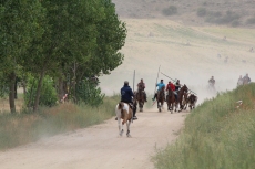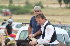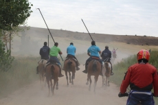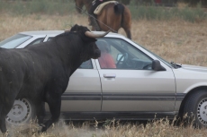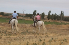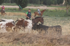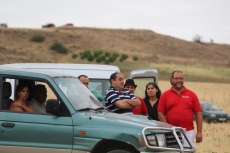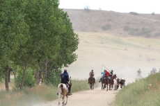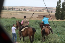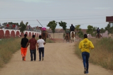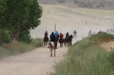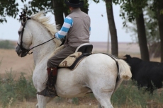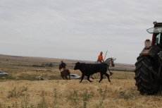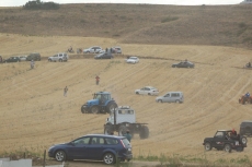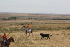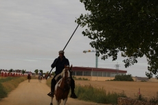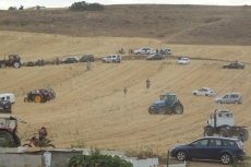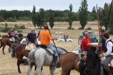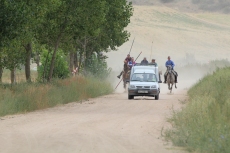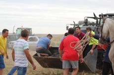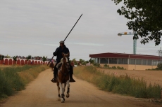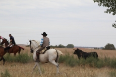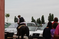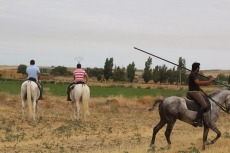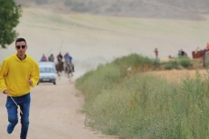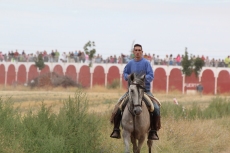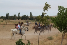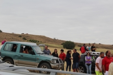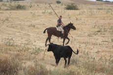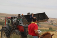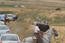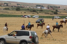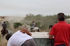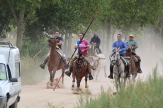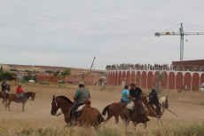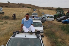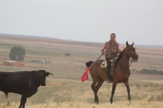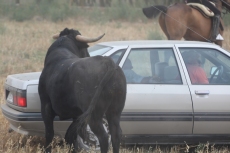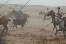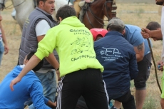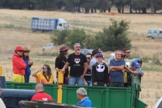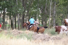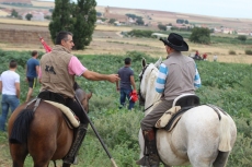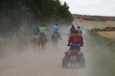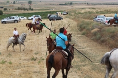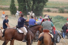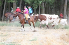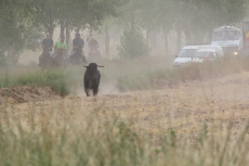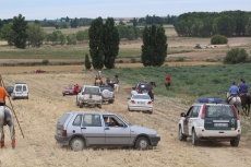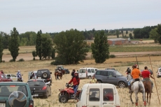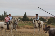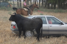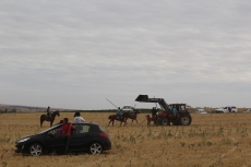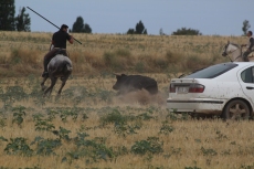 Un caballista cantalpinés es derribado en la embestida de un novillo / Cientos de aficionados hacen el recorrido por las tierras del camino de Peñaranda a caballo, en tractores, remolques, coches, todo terrenos y motos (AMPLIA GALERÍA DE FOTOS)
