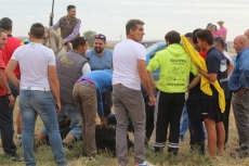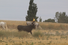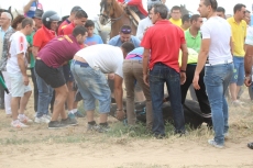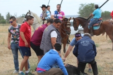 Salvo los contratiempos reseñados del novillo sedado y el jinete derribado, el encierro campero transcurrió con mormalidad durante las casi dos horas de duración, en medio de una alta asistencia de vecinos del pueblo y de otras localidades colindantes.