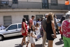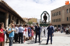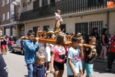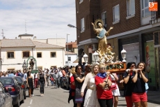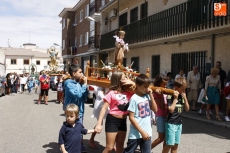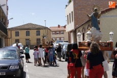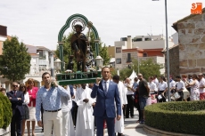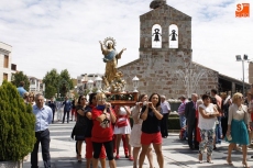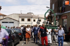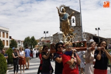 Precedido por las imagen del Niño Jesús, portada por un grupo de niños, y por la de la Virgen, llevada en andas por las mujeres, San Roque ha recorrido las principales calles del pueblo en un acto solemne amenizado durante todo momento por la música de la Agrupación de Carbajosa y por el repique de campanas. Numerosos fieles se han unido a la comitiva para rendir honores a su patrón en el día grande de las fiestas.