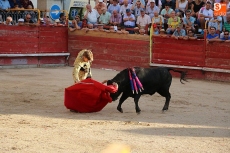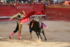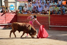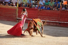 En su segundo, cuarto y último de la tarde, parecía que las cosas no le iban a cambiar. El novillo había mostrado carácter y parecía que iba a poder al torero, pero al final Antonio Grande sacó raza y toreó, ligó varias tandas con la mano derecha, el torito se arrancaba pronto y repetía, y el torero lo entendió. Cambio de mano y sacó algún muletazo con temple que llegó a los tendidos, prácticamente llenos. Al final, buena faena aunque con dos pinchazos antes de la estocada definitiva, lo que el presidente premió con una oreja.