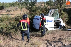 Por su parte, A.M.L, de unos 30 años de edad, conducía la furgoneta implicada en la colisión, siendo trasladado en helicóptero hasta el hospital tras ser atendido en el lugar de las heridas que presentaba, en una pierna, entre otras. En el rescate del ocupante de la furgoneta intervinieron bomberos voluntarios de los parques de Vitigudino y Lumbrales, además de Guardia Civil de Vitigudino.