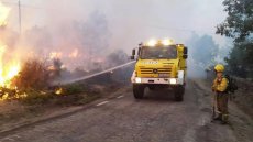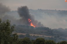 Las fuertes rachas de viento están propagando las llamas hacia el casco urbano de Bermellar, y es precisamente en la carretera que une Lumbrales con esa localidad donde se pretende atajar las grandes llamas, pues se trata de una zona con mucho matorral.