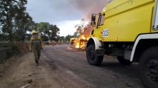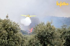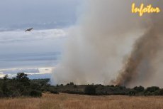 Aún así, el incendio sigue activo con un frente de varios kilómetros. Un cambio repentino del viento podría complicar la situación durante la noche, pues se trata una zona escarpada y con densa vegetación, lo que impide el acceso a los medios terrestres.