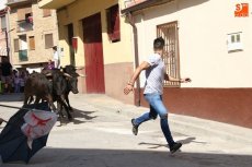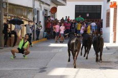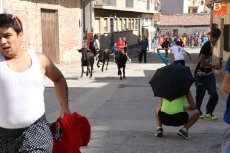 No pararon de ir y de venir las vaquillas del encierro de ida y vuelta programado para la mañana del sábado. A pesar de su dinamimo, las vaquillas no crearon mucho peligro lo que permitió a los más jovenes disfrutar de este peculiar encierro por las calles de la localidad.