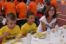 No hay mejor manera de despedir una completa semana de actividades con motivo de las Fiestas de Verano que degustando un buen plato de arroz. Y ésta era precisamente la invitación para este domingo en Sardón de los Frailes, aceptada por amigos y vecinos que se han reunido en torno a la mesa para disfrutar de la paella popular para más de 350 comensales. Grandes y pequeños han compartido la cita gastronómica en una jornada que también ha incluido, entre otros, la entrega de premios de parchis y los juegos populares.