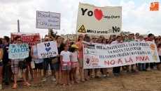 Los manifestantes, convocados por la plataforma Stop Uranio, profirieron cánticos y lemas, y lucieron pancartas de repulsa contra el proyecto de la mina de uranio a cielo abierto promovido por la empresa de origen australiano, iniciativa que conlleva la creación de una planta de tratamiento de uranio y el almacenamiento de residuos radiactivos de primera categoría.