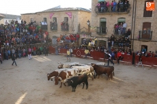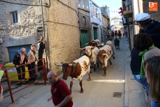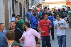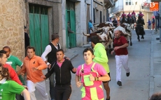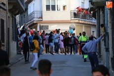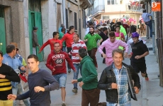 A parte de esta incidencia, el encierro con los tres novillos discurrió rápido y sin problemas, a excepción del susto que se llevaban en la plaza dos jóvenes, un hombre y una mujer, por aquello que dos cuerpos no pueden ocupar el mismo espacio cuando ambos intentaban colarse por entre los barrotes del cierre del coso aldeaviluco.