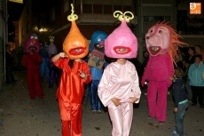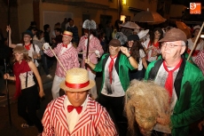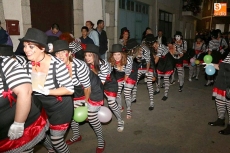 Kamaru y su 'Con beee de oveja' abría el desfile precedidos de la carroza de la corte de honor, y a continuación todo inimaginable y, sobre todo, un excelente buen humor. Bimayka y su carroza de lo que parecían gondoleros llegados de Venecia; Los Primitivos dejaban constancia de que a sus 30 años, aunque zombis, siguen muy vivos; y La Moska Gao volvió a dejar patente que es una de las peñas destacadas de este desfile con un gran barco y la torre de Londres, que titulaba 'Peter Pan, de Londres hacia Nunca Jamás'. La peña Marijuana repesentaba su Mary Poppis particular.