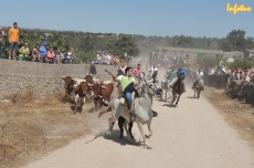 El momento de mayor emoción en este encierro llegaba a la entrada del casco urbano de Lumbrales, cuando los novillos habían sacado cierta ventaja a mansos y cabalistas, lo que les dio tiempo a pensar y pararse. Fue entonces cuando varios de los erales intentaron darse la vuelta y obligó a actuar a uno de los jinetes. Esto motivó instantes de peligro, al menos para el caballo, que estuvo a punto de ser corneado, aunque felizmente todo quedó en el lance.
