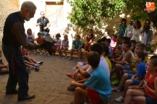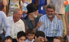 Dentro de su recorrido por el Divierteatro, la Corporación entró en el patio de la Iglesia de Cerralbo para conocer a Glic, el hombre de las máscaras, papel en el que se mete Denis Rafter, que sacó a escena al alcalde Juan Tomás Muñoz (también salió José Manuel Jerez debido a que su nieta estaba presenciando el espectáculo).