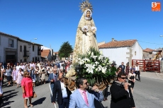De este modo, la jornada comenzaba con una misa concelebrada a la que seguía el ofertorio. La Virgen de los Caballeros salía a hombros escoltada por los cofrades para situarla junto a la Casa Consistorial, lugar donde cientos de fieles entregarían sus donativos a beneficio de la Parroquia y cuto acto estuvo presidido por los mayordomos Dionisio Holgado García y Borja Holgado Muñoz, los mismos que momentos después, ya en la ermita, entregaban las varas a los nuevos mayordomos, Manuel Calderón Sánchez y Ángel Antonio García Hervalejo, y que servirán a su Reina durante un año tras recibir la bendición en el pequeño templo.