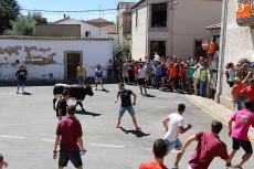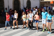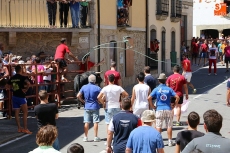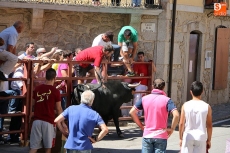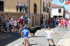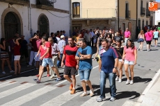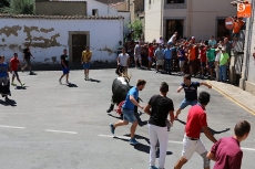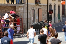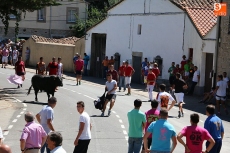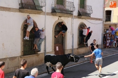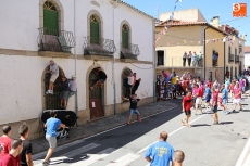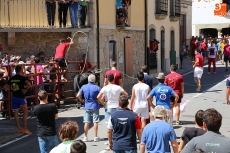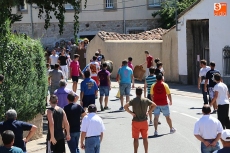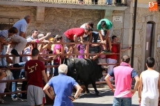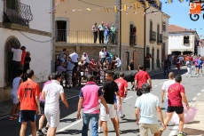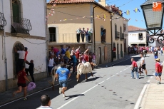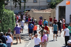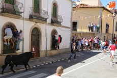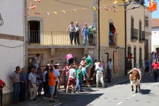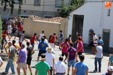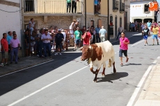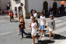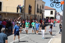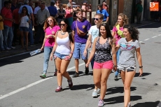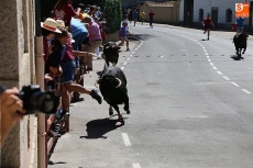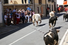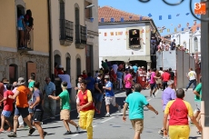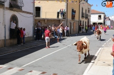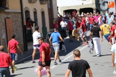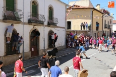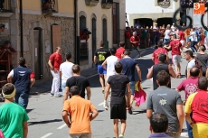 Finalizados los actos religiosos, la calles se tornaban en bullicio de la mano de las peñas, que ya esperaban la salida del primer encierro de estas fiestas, festejo que en esta ocasión se celebraba al estilo tradicional, totalmente diferente al que tendrá lugar el próximo domingo, que se correrá con caballos desde una finca situada a varios kilómetros del casco urbano.