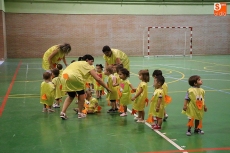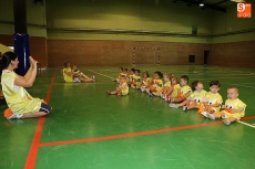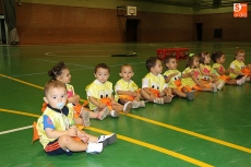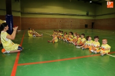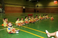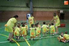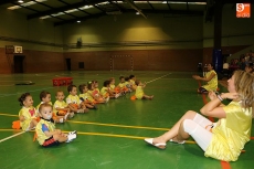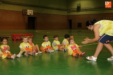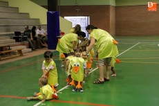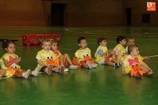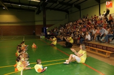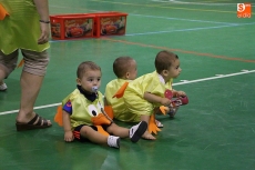 La guardería municipal celebró ayer jueves su ya tradicional fiesta de verano, en esta ocasión con los más pequeños, 18 casi aún bebés que hicieron reír de alegría y emoción a madres y padres. El escenario fue el pabellón deportivo y allí, de la mano de sus monitoras, los pequeños mostraron sus avances en motricidad y también sus comienzos en el camino hacia la sociabilidad mediante pequeños ejercicios en grupo. Además de a este grupo de hasta los dos años, el servicio de guardería se extiende a 11 niños más de hasta cuatro años.