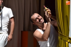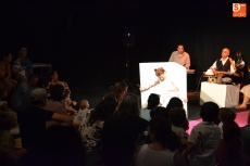 Mientras esa obra tenía lugar, en el Espacio en Rosa Magín Blanco puso en escena Gatuxo, un espectáculo con música, teatro, cuentos, clown, manipulación de objetos y hasta claqué, en el que se presenta el crecimiento de los hijos y su descubrimiento del mundo desde una perspectiva artística.