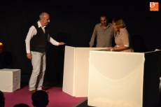 La Feria de Teatro de Castilla y León contó en la mañana de su última jornada con 4 espectáculos teatrales (hubo un quinto dentro del bloque de actividades complementarias), con una doble ración de ratones y otra de música. La primera ración de ratones tuvo lugar en el Teatro Nuevo Fernando Arrabal, dentro de los Cuentos de oro, de Escaramuza Teatro.