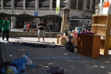 Previamente, ya se habían sacado de la Plazuela todos los juegos de la empresa catalana Guixot 8 que han llenado estos días el recinto, y que en este caso, sí 'han dormido' en la propia Plazuela, protegidos por numerosas vallas.