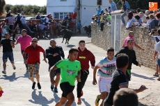 Como suele ser tradicional en este municipio, debido a lo corto del recorrido, el encierro se dividió en dos partes. En primer lugar se daba suelta en los chiqueros de la plaza a la manada de cuatro mansos para que realizaran el recorrido en sentido contrario y arroparan a los dos primeros novillos del encierro en su carrera al coso ribereño. Y sobre lo último, eso era lo previsto, pero únicamente uno de los dos novillos emprendió la carrera camino de la plaza como 'alma que lleva el diablo', porque fue visto y no visto logrando una gran ventaja sobre los mansos. Una vez en el coso se produjo el único incidente del encierro cuando un corredor cayó en la plaza a la entrada del eral, aunque todo quedó en un susto.