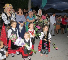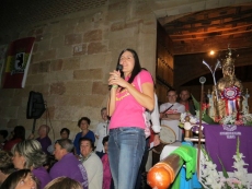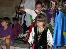 Antes del chupinazo que marcó el comienzo de las fiestas, tomó la palabra la presidenta de la plataforma La Ela Existe, invitada especial, ya que la Corporación y todo el pueblo quisieron tener un momento solidario con esta enfermedad mojándose después de la ofrenda floral. Ya en la Plaza, la Virgen de la Vega recibió ramos de flores de las peñas y asociaciones del pueblo.