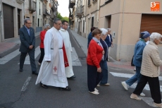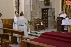 Mientras, en la parte trasera de la comitiva desfilaron el encargado de las predicaciones de este año de la Novena, el Reverendo Padre Justino López Santamaría, acompañado del Vicario Parroquial de San Andrés, Prudencio Manchado Vicente, y del Seminarista Mayor Miguel Ángel García. De vuelta a la Iglesia, hubo una Eucaristía.