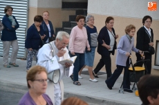 En una mañana fresca, pero despejada, los fieles se fueron congregando minutos antes de las 8 de la mañana en el interior de la Iglesia de San Andrés. Con puntualidad, el párroco Celso Martín Santos dio la bienvenida a todos los presentes y procedió a iniciar el rezo de los Misterios Gozosos, escogidos por tratarse de una jornada festiva aunque por el calendario debía tocar el rezo de los Misterios Dolorosos.