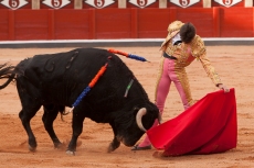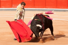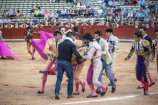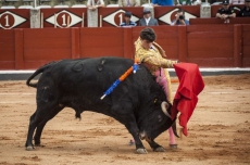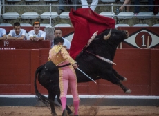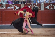 Dos largas cambiadas, lances a pies juntos y una larga cambiada más. Así, con esa carta de presentación gritó fuerte Alejandro Marcos que lo mejor iba a venir de su mano en el quinto puesto. Se agarró a ese propósito que trasforma los errores en progreso y entendimiento. Se agarró al gusto innato que ya es su marca, su identidad y regaló al aficionado aromas que remontan a un torero antiguo de valor, y temple. Verdad y poso. Tras esa carta de presentación en el saludo capotero, tafalleras para seguir remando en una misma dirección: la que siempre acaba bien. Bajó la mano ya en el trasteo de muleta ante 'Finito', que humilló sin regalar nada. Noble pero áspero el de José Cruz aunque tuvo trasmisión en los primeros tercios. Encajado, selló el novillero de la Fuente de San Esteban derechazos largos, cuajados. Bien también al natural, templando. Sudor y casi sangre al son de las agujas de la Glorieta que se aceleraban al presenciar lo que más emoción tuvo hasta el momento, que fue aún a más cuando el novillero fue prendido de forma violenta volviendo la cara al novillo y, sin dudar, se repuso para acabar con ejecución lo que había empezado, a base de remates toreros, y clase en redondos finales. Mató de una estocada entera; no fue brillante, trasera, pero fue el cambiar el rumbo de la tarde y lo diferente lo que el respetable premió, y con eso, las dos orejas, las únicas. Únicas porque la novillada, de expectativas altas, no remató.