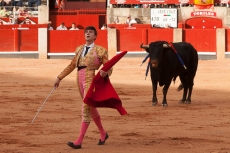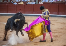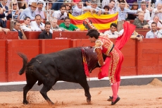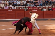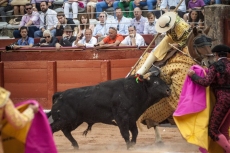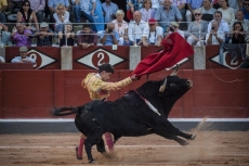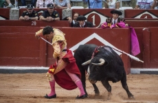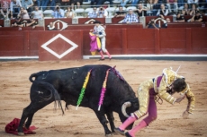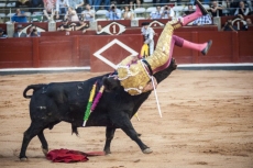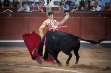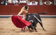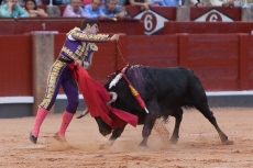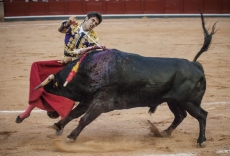 De entendimiento supo también Álvaro Lorenzo, poso y solvencia, sellando también lo destacado. Fue 'Calabris', el segundo, un noble novillo, que aunque rajadito, humillaba con condición y clase. Inició su trasteo de muleta de rodillas, exponiendo mucho. Larguísimos derechazos, despacio. Naturales largos y profundos con mano baja. Resultó también prendido sin consecuencias y se repuso, pero con la espada se fue el triunfo. Pinchó y fue ovacionada una faena que hubiera llevado premio.