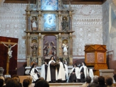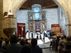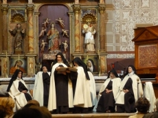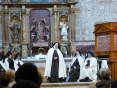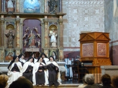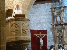 El público, entre el que se encontraban varias religiosas, se metió en el montaje de principio a fin y no perdió detalle durante todos los pasajes de la obra. La música del siglo XVI estuvo presente y sabiamente gobernada por la mano del maestro ciego Francisco Salinas (coetáneo de Teresa de Jesús). La iglesia, muy bien conservada y con un púlpito espléndido tallado en granito, tiene una perfecta acústica y todo se desarrolló en riguroso directo y sin microfonía: la música, las canciones, el recitado de poesías así como todos los diálogos de los diferentes actores y actrices.