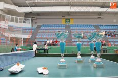Los más pequeños mostraron sus habilidades sobre la mesa cogiendo las raquetas con maestría y dando toques de auténticos expertos. Los familiares de los participantes, los aficionados y los curiosos que entraron al pabellón disfrutaron del espectáculo en una jornada festiva y donde el deporte toma especial protagonismo en estas ferias y fiestas salmantinas.