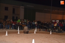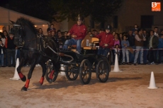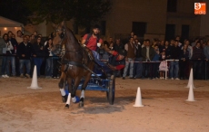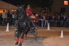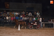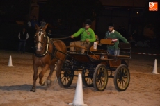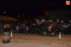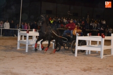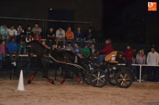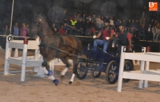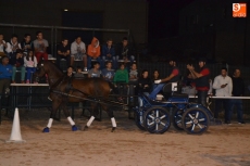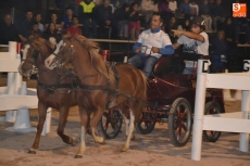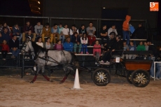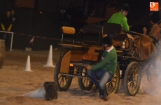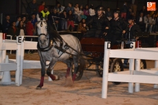 Poco a poco la carpa se fue animando según iban pasando las horas de esta primera jornada de Feria del Caballo, que tuvo como novedad la celebración de una primera actividad con los caballos como protagonistas: una competición de enganches en la pista (habrá otra competición similar, pero independiente, en la noche del sábado). Con una notable afluencia de público presenciando la competición, a la pista salieron 7 enganches, que tuvieron que completar en el menor tiempo posible un recorrido con diversos obstáculos.
