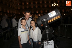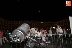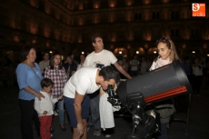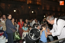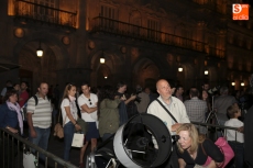 La Plaza Mayor se ha convertido en escenario para mirar esta noche de sábado a la Luna. Coincidiendo con la celebración de la VI Noche Internacional de Observación de la Luna, la Organización Salmantina de la Astronáutica y el Espacio (O.S.A.E.) ha organizada una velada que ha incluido la proyección de fantásticas imágenes astronómicas y la colocación de varios telescopios para observar la luna. Este año además se ha querido rendir homenaje a uno de los miembros de O.S.A.E. que falleció el pasado mes, Juan Carlos Prieto (Juancar).