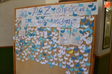 En lo referente a la conmemoración en el IES Fray Diego Tadeo de Ciudad Rodrigo, todos los miembros de la Comunidad Educativa que lo desearon pudieron dejar mensajes o ideas sobre lo que supone para ellos la paz en el gran panel situado en el hall del centro. Mientras, en la pantalla de televisión situado en ese mismo hall se fueron proyectando alusiones a la jornada, a la par que por el hilo musical sonaron canciones como el Imagine de John Lennon.