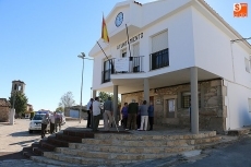 Un grupo de vecinos de Trabanca se concentraba este lunes junto a la puerta del Ayuntamiento en señal de apoyo al secretario municipal, Javier Hernández Guardado, que a primera hora de la mañana se incorporaba a su puesto de trabajo después de que la semana pasada intentase su incorporación después de tres meses de ausencia.