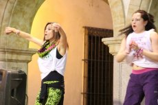 La Asociación de Familiares de Alzheimer de Salamanca, en colaboración con el Ayuntamiento de Alba de Tormes, organizó una peculiar sesión de zumba en la plaza mayor. Las participantes no tuvieron reparos de actuar ante los vecinos de la villa ducal que momentos antes recibían a la Marcha Teresiana.