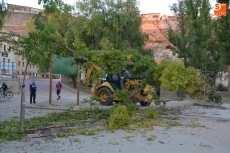 Debido a cómo quedó situado el árbol, entorpeciendo la entrada al parking, el Ayuntamiento procedió a su retirada inmediata. En este sentido, se tuvo la suerte de que en las inmediaciones estaba la máquina excavadora que está participando en la citada intervención de renovación de El Picón.