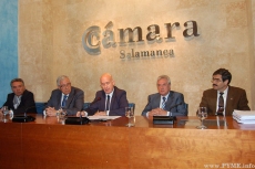Mesa de comparecientes en la rueda de prensa convocada por la Cámara de Comercio de Salamanca el 22 de septiembre de 2015.