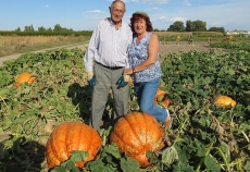 Llegado el otoño, el huerto de Miguel Chamoso Carnicero luce sus mejores galas, las de siempre, las calabazas con más enjundia de la zona. Al menos en Villoria ningún hortelano cosecha unidades tan esbeltas y con más peso, que, en algún caso, alcanza hasta los 180 kilogramos.