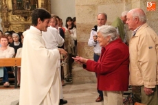 Fue una eucaristía sencilla que solamente se rompió cuando los vecinos de Alba de Tormes y varios pueblos de la comarca rompieron a aplaudir para despedir al párroco.